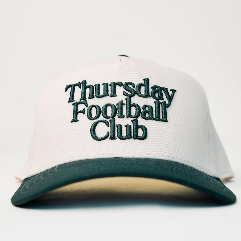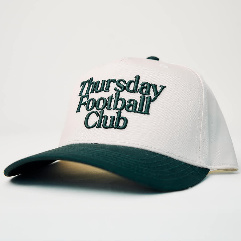 Introducing the Thursday Football Club New York Hat. Built in bold green with a high-profile fit that stands out in any crowd. Whether you’re tailgating in the MetLife parking lot, grilling sausage and peppers before kickoff, chanting with the diehards in the upper deck, or riding the train in from the city, this hat blends tough New York attitude with Thursday Football Club swagger.