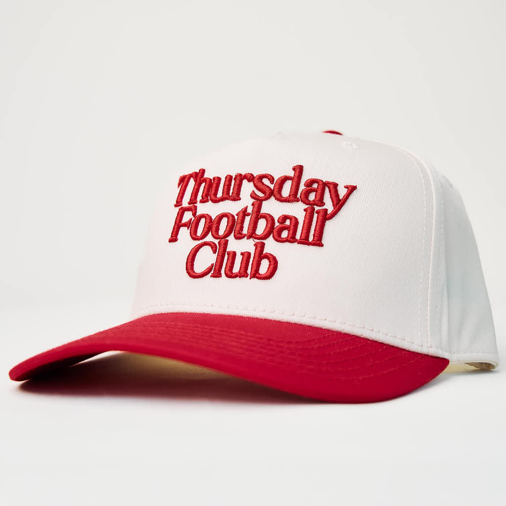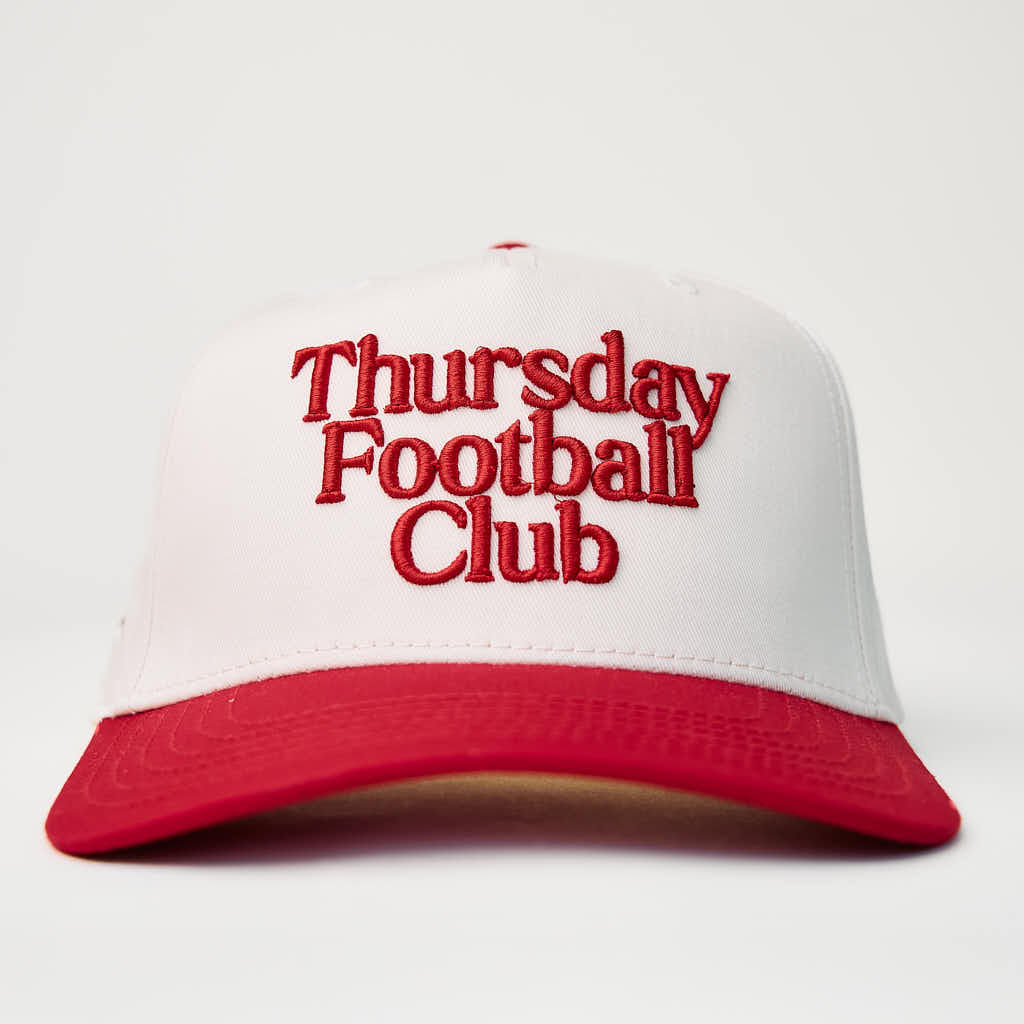 Introducing the Thursday Football Club Kansas City Hat, designed exclusively for The Kingdom. Featuring vintage-inspired colorways and a high-profile fit, this hat is the perfect way to showcase your team pride in style. Whether you’re tailgating in Lot J, tomahawking in Arrowhead Stadium, gameday-grilling in the backyard, or adding a bold touch to your everyday look, this hat is crafted to represent Kansas City fans with timeless flair with a touch of Thursday Football Club swagger.